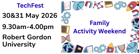 TechFest Family Activity WeekendFrom May 30, 2026 09:30 until May 31, 2026 16:00 At The Sir Ian Wood Building, Robert Gordon UniversityTechFest’s Activity Weekend is a fun, hands-on STEM event designed to inspire families and young people through in...